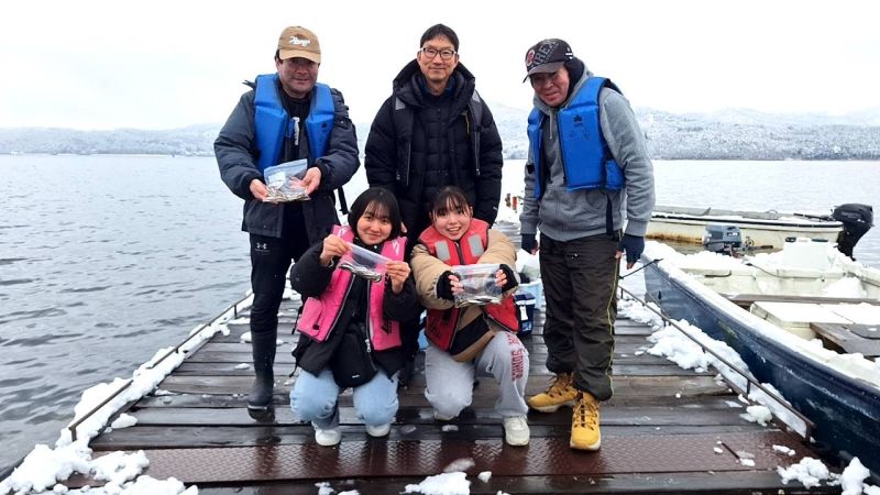 今日は雪が降ってワカサギも好調でした。 群れの入りもよく皆様楽しめました。 釣り竿、えさなどの道具類もご用意しておりますので お気軽にお問い合わせ下さい。 船内での飲酒は禁止となりますので、ご理解、ご協力お願いします。 ワカサギ釣りはポツポツ楽しめますので、 遊びにいらして下さい。 うおやすボート TEL:090-5202-5565